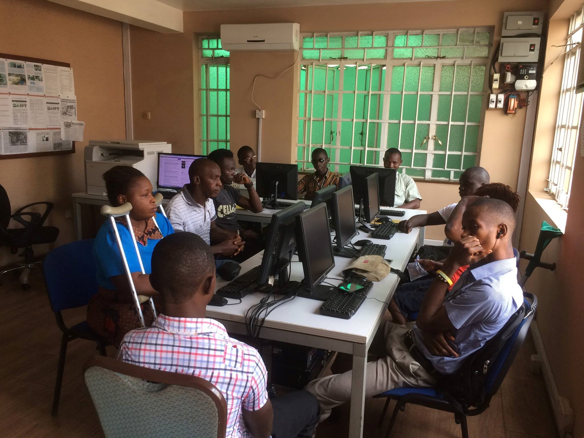 On 21st March 2020, the Dorothy Springer Trust (DST) conducted interviews of applicants for the Basic Information and Communications Technology (ICT) Level 2 program. It was a marathon event, starting at 7:30am. 16 candidates travelled from across the Sierra Leone to attend – from Bo, Makeni, Moyamba, as well as the capital Freetown. Candidates have a range of different types of disabilities: mobility, visual hearing impairments, kyphosis and amputee.